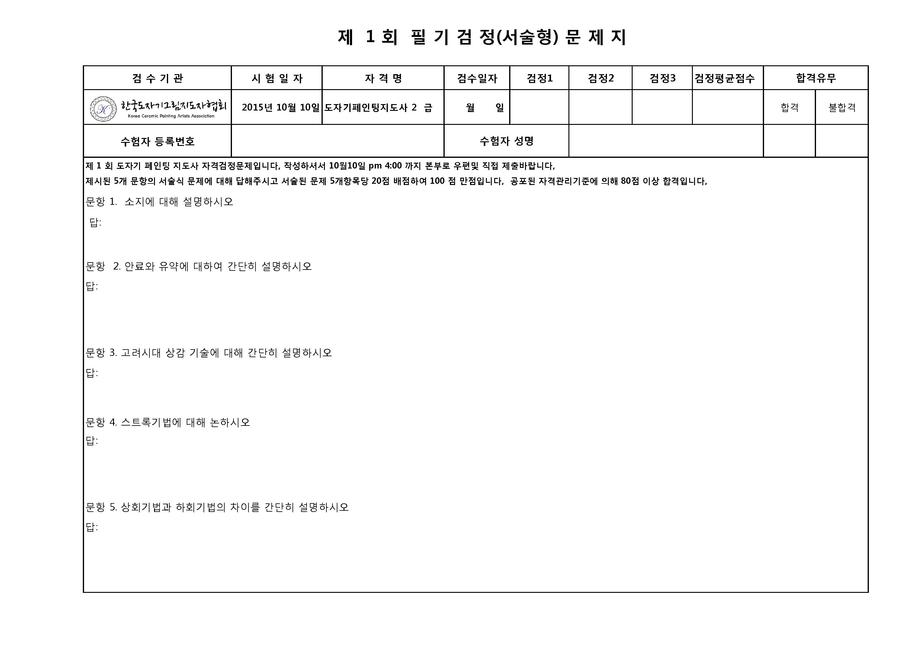 2015년 도자기페인팅 지도사 2급 필기문제 공고